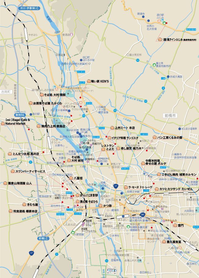 地図上の豚マークまたは店舗名をクリックすると店舗の詳細が表示されます